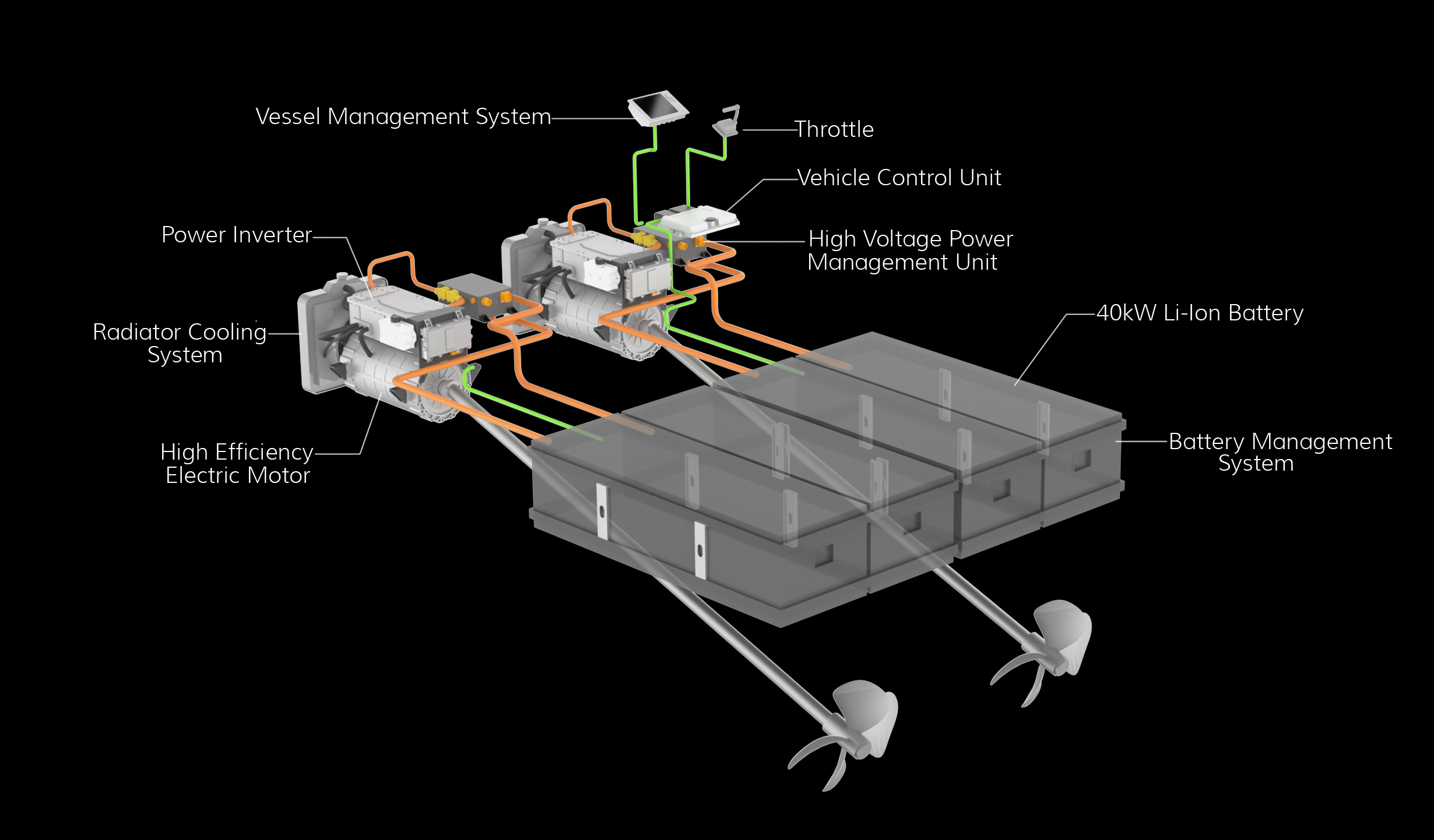 Battery: 540VDC 111KWh (1680lb) or 222 KWh (3360lb)